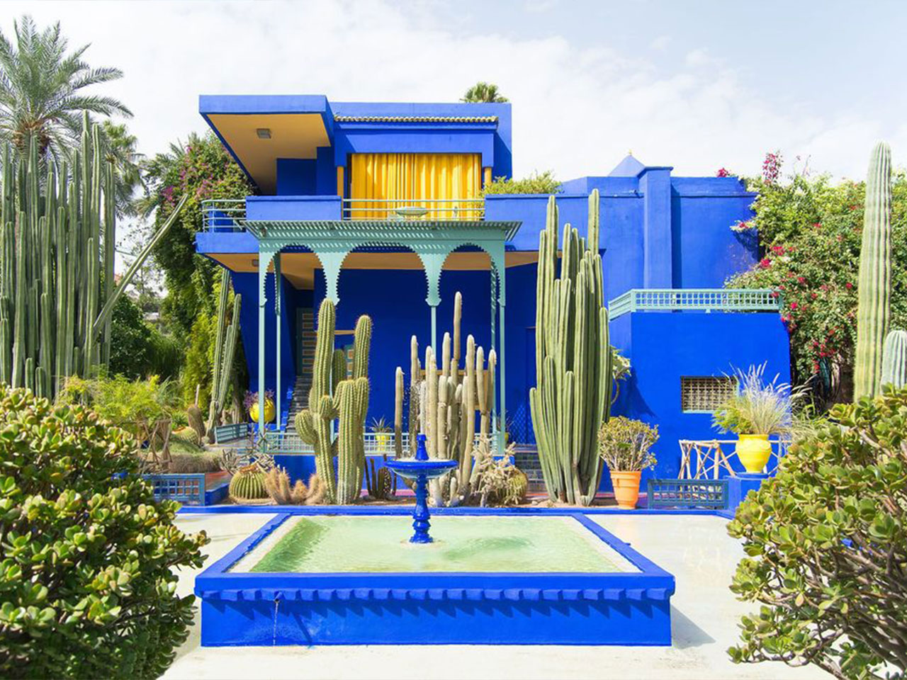 Marrakesh boasts numerous gardens and greens spaces in its old and new towns Visit the Majorelle Garden, an enchanting spot, a masterpiece of light and color, filled with exotic flowers and plant life and alive with birdsong and the murmur of the fountains, was created by the Frensh painter Jacques Majorelle, who came to live in Marrakesh in 1922. The artist painted the walls of his Art Deco villa and garden a vibrant and luminescent ultramarine. Set ast it is in the heart of an ochre red city, his bleu garden certainly raises a few eyebrows- it is, however, the bleu of Marrakshi skies! The property niw belongs to the Pierre Berge Yves saint Laurent Foundation, and houses a museum of Islamic art, along with the ashes of famous couturier himself