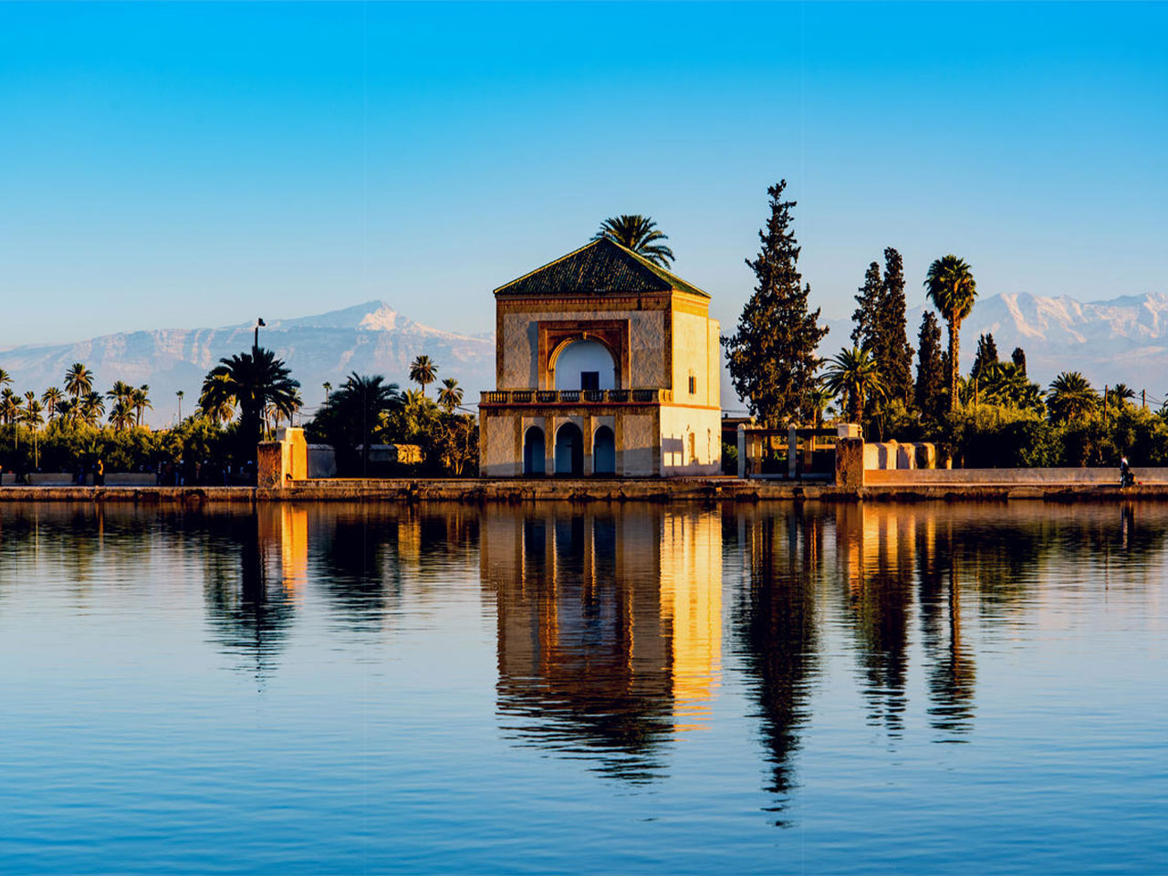 Visit the Menara Gardens buit by The Almohads in the 14th century, a graceful summer pavilion with an artificial lake surrounded by a huge orchard planted with olive trees. As nights falls the place becomes a heaven, glowing with every shade of gold. The lake serves as a basin for irrigating the olive grove and is supplied by a 700 years old hydraulic system that harnesses water from the mountains and brings it in through 30 kilometers of pipes.